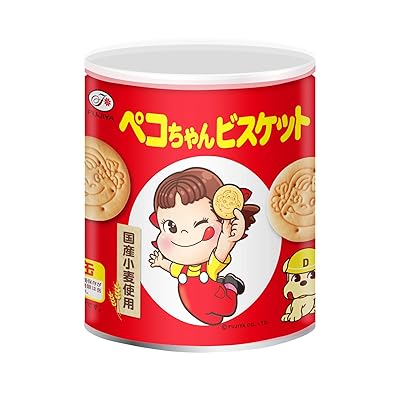「不二家 ペコちゃんビスケット保存缶」は、ペコちゃんのイラストがデザインされた保存缶に入ったビスケットです。